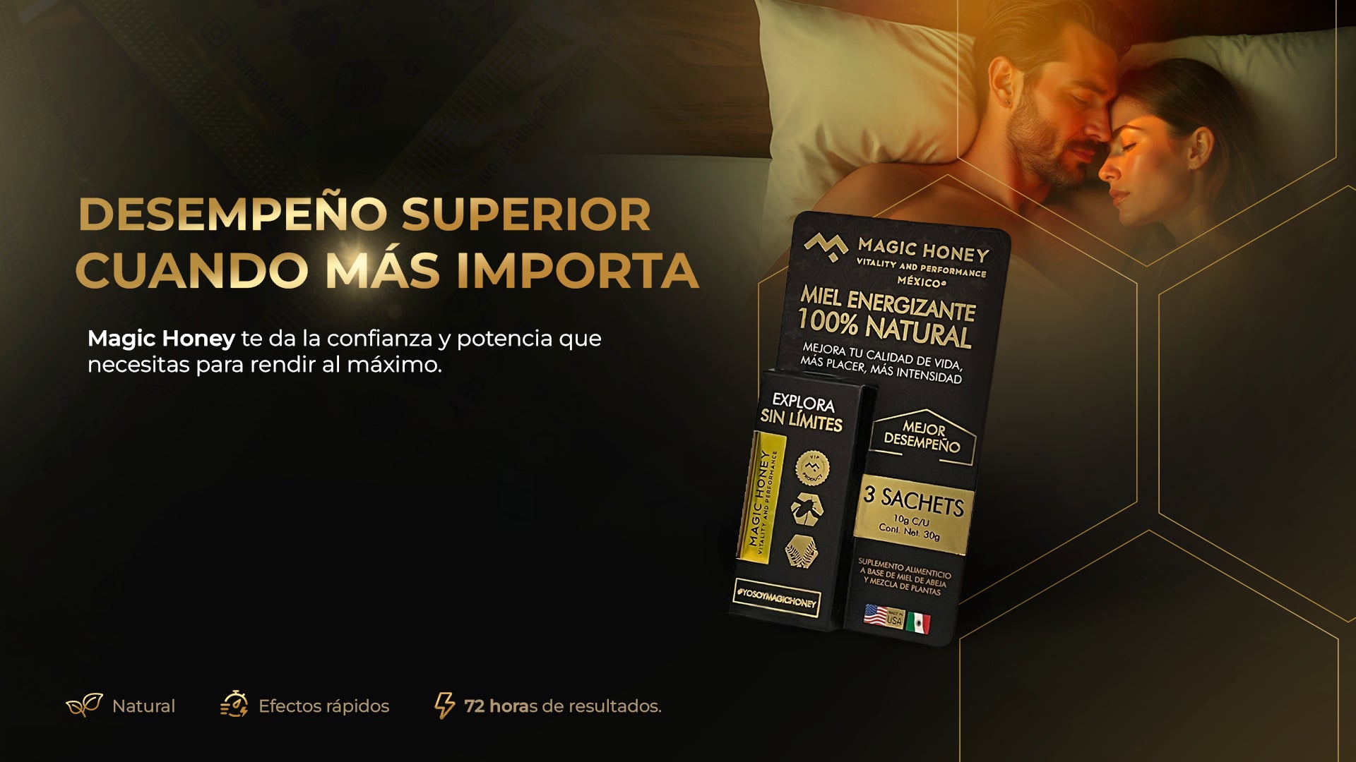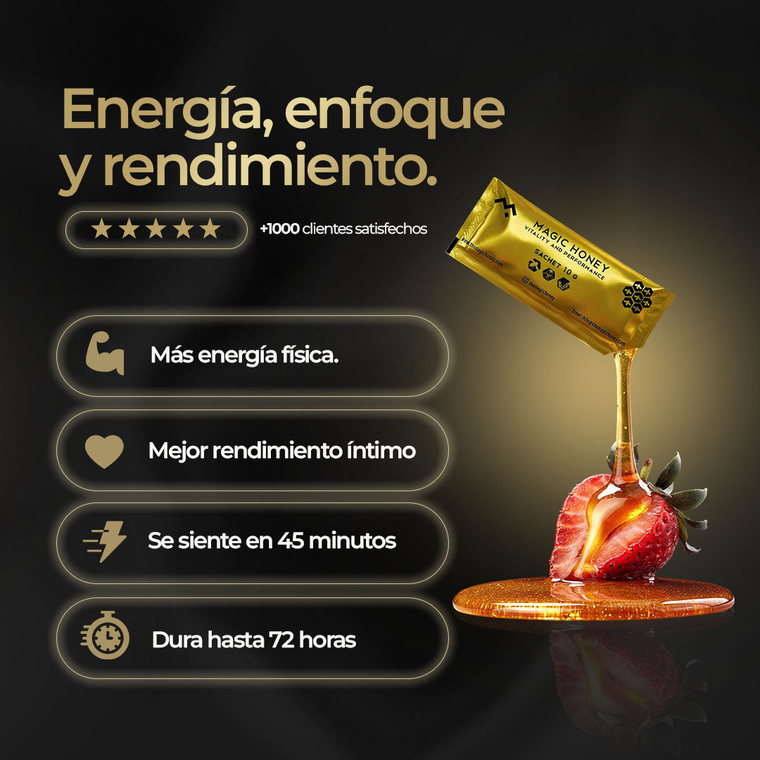 Magic Honey es una miel energizante diseñada para potenciar tu rendimiento sexual, físico y mental de forma inmediata. Su fórmula natural combina ingredientes como Tongkat Ali, Guaraná y Canela, ofreciendo beneficios comprobados: